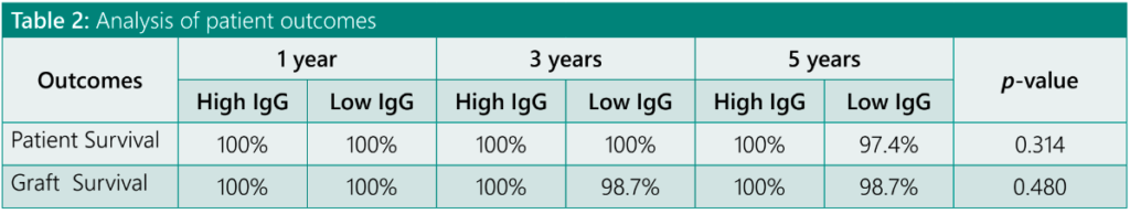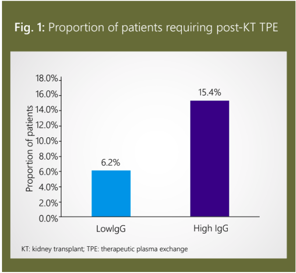 Compared to the low-IgG group, a larger number of patients in the high-IgG group required post- KT TPE due to a rebound in isoagglutinin titer as depicted in Figure 1.