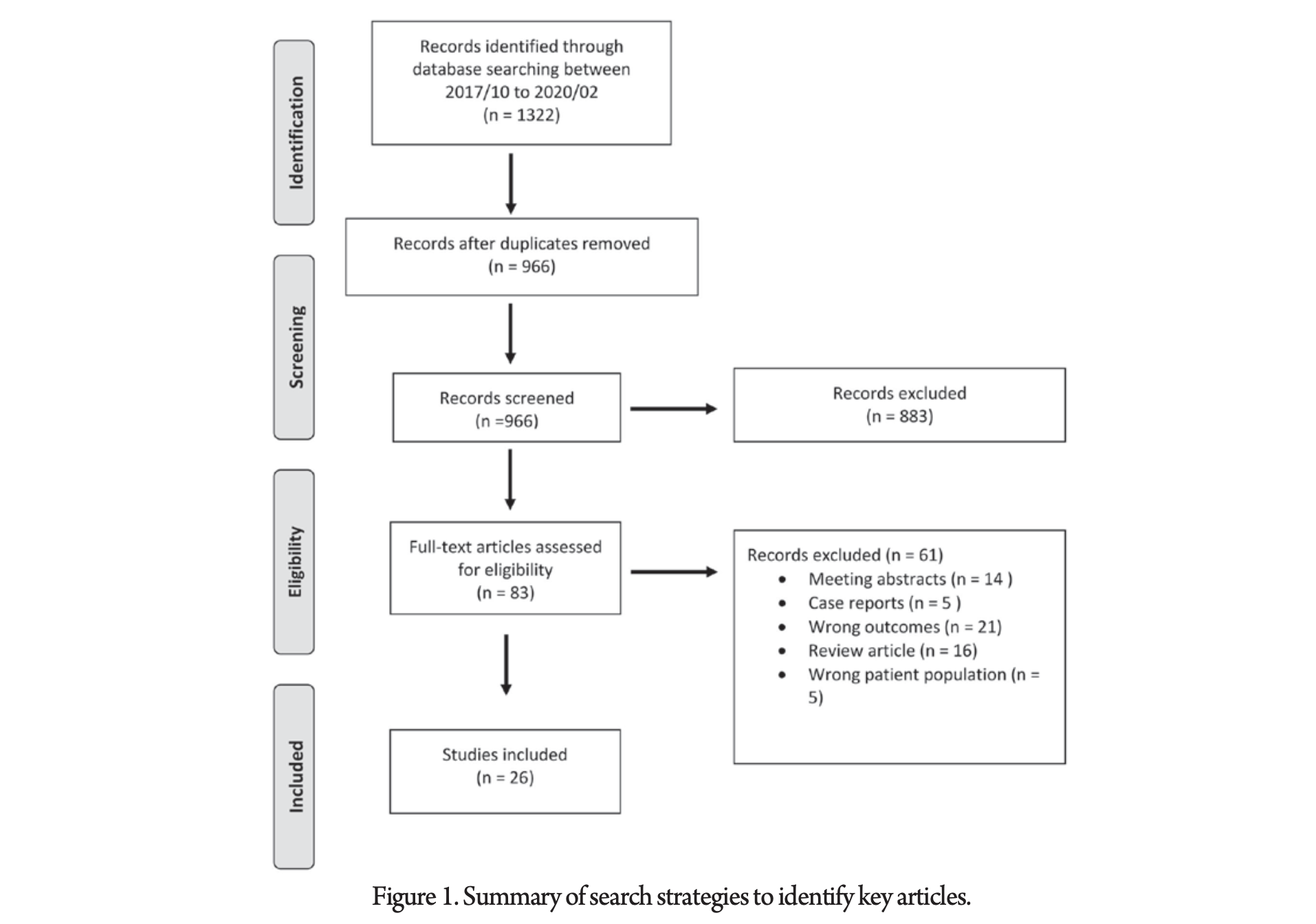 Two independent reviewers conducted the screening process, with disagreements resolved by a third reviewer. An additional 22 articles were found, and SoF tables (26) for observational studies and GRADE tables (2) for clinical trials were developed, with updates to the ACR tables.