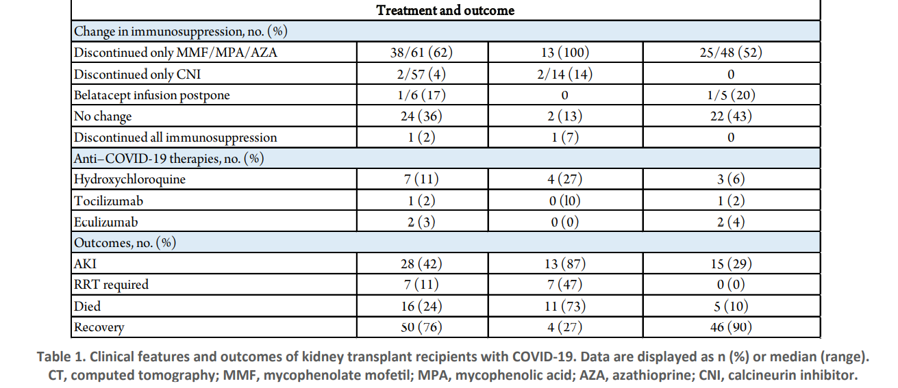 5. Columbia University Kidney Transplant Program: Early description of coronavirus 2019 disease in kidney transplant recipients in New York. J Am Soc Nephrol 31: 1150–1156, 2020 pmid:32317402