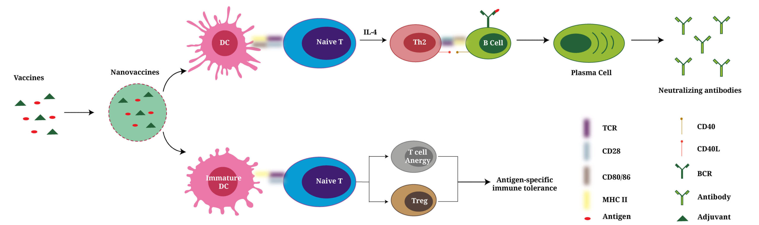 Nanotherapeutics have many advantages for the treatment of autoimmune diseases and have been comprehensively reviewed recently in several articles [17,63,97]. As a major type of nanotherapeutics, nanovaccines are composed of antigens or antigen-encoding agents, immunomodulatory agents, etc. loaded in nanocarriers. The nanocarriers for nanovaccines can be divided into two major categories by functions, nanocarriers for delivery only, and nanocarriers for delivery and immune modulations. Most