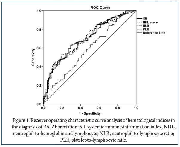 In conclusion, hematological indices are easily measured and available disease activity markers of systemic inflammation in RA. Among hematological indices, SII, NHL score, & NLR, but not PLR, were associated with disease activity measures & adequately reflected disease activity in RA. Furthermore, two indices, SII and NHL score, could have a complementary role in the diagnosis of RA. Thus, these hematological indices, along with the traditional measures, are helpful in assessing the disease activity of RA in clinical practice. The role of hematological indices in the assessment of disease activity and prediction of clinical outcome should be confirmed in prospective longitudinal studies.