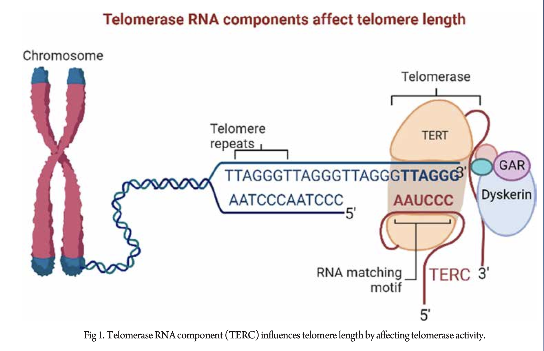 TERC maintains telomere length, and its deficiency can lead to telomere shortening, DNA damage, and various diseases. Correcting TERC haploinsufficiency offers a promising avenue for treating such conditions.