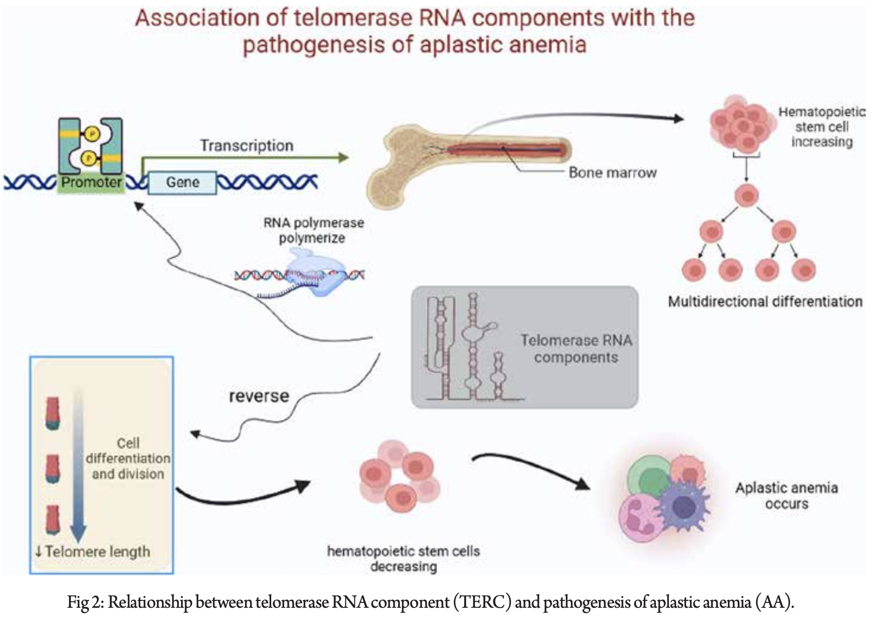 TERC, the RNA component of telomerase, is vital for catalytic activity and maintaining genomic stability. It provides a template for telomere DNA synthesis, potentially offering insights into diagnosing and treating telomere-related diseases like AA.